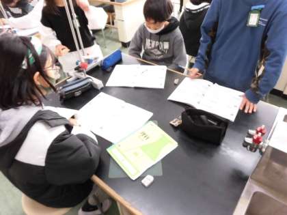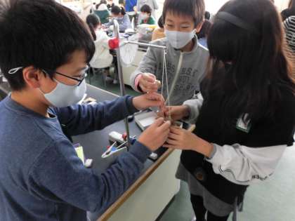 ふりはばを変えて,ふりこのふれる速さに変化が出るか調べています。