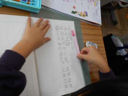 漢字ドリルにのっている文章をノートに書いています。丁寧に書くことが目標です。