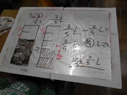同分母の分数の引き算はどうすればよいのでしょうか。マス図,数直線その他を使って考えています。