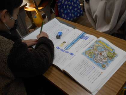 たからじまの地図から想像したことを,物語にしています。みんな一生懸命ノートに向かっています。