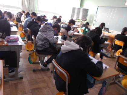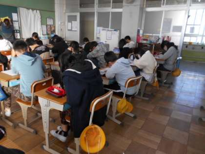 「柿山伏」についての確かめテストをしています。文章をよく読んで頑張りましょうね。