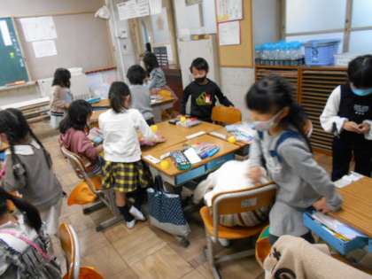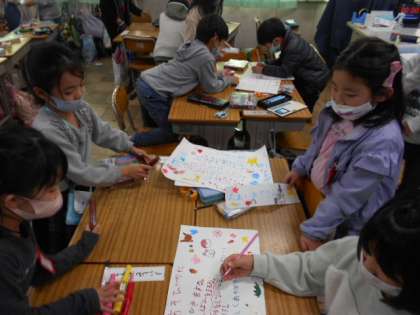 1年 わくわく広場に向けて 公開日 2021/12/15 更新日 2021/12/15 1年生 生活科「きせつとなかよし あき」で作ったおもちゃを,幼稚園のお友達との交流「わくわく広場」でみんなに楽しんでもらおうと準備をしています。説明の練習をし,ポスターも作っています。