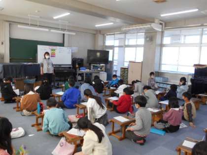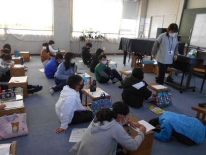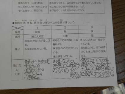 歌い方の工夫について考えています。歌詞やメロディーから自分なりにとらえたことを表現してみましょう。