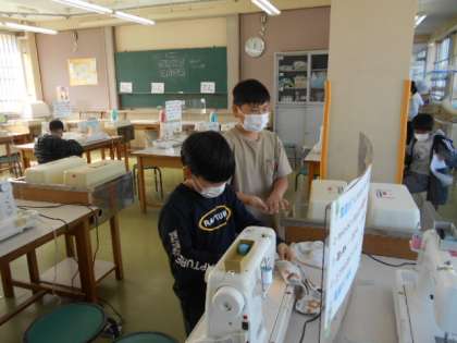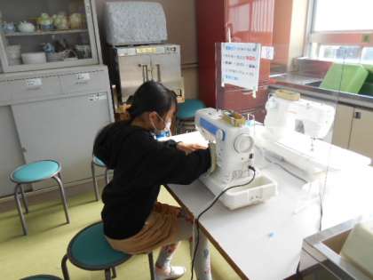 ミシンを使ってぞうきんを作成しています。さすが6年生。ミシンの扱いにも慣れてきています。