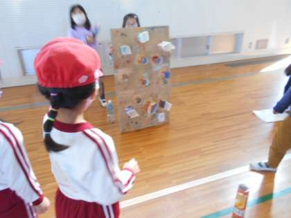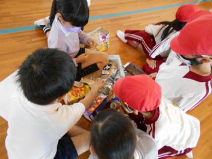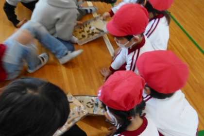 1年 ワクワクひろば 1 公開日 2021/12/16 更新日 2021/12/16 1年生 葉っぱや木の実などを使って作ったおもちゃで遊びます。今日は,美木幼稚園の友だちがお客さんです。1年生がお店屋さんになって遊び方の説明をしています。お客さんは話をしっかり聞いてくれていますよ。