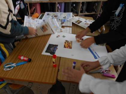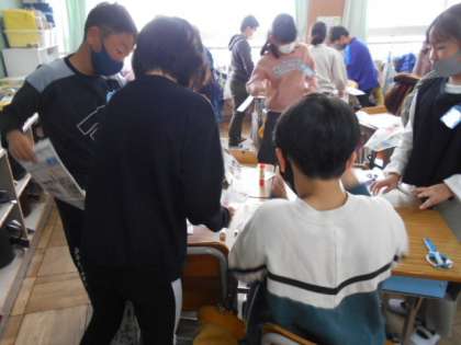 4年 特別活動 コラージュを作ろう 公開日 2021/12/17 更新日 2021/12/17 4年生 廊下に掲示しているコラージュを見て,チラシ中から同じものを探します。グループの一人だけが廊下の見本を見ることができます。うまく友だちに伝えて,コラージュを作ることができるでしょうか。