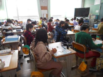 4年 算数 答え合わせ 公開日 2021/12/17 更新日 2021/12/17 4年生 計算問題の答え合わせをしています。余りのある割り算,( )を使った式の計算など,2学期にたくさん勉強しましたね。