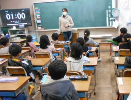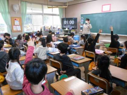 席替えをしました。新しく横の席になった友だちと,好きな飲み物の教え合いなどをしています。仲良く頑張りましょうね。