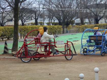 自転車体験では,昔の自転車のレプリカに乗りました。