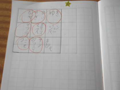 冬にちなんだ言葉を集め,ビンゴゲームをします。オールビンゴになった人もいますね。