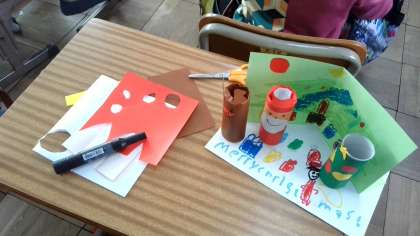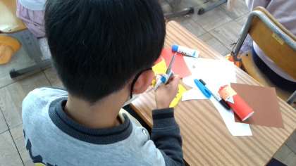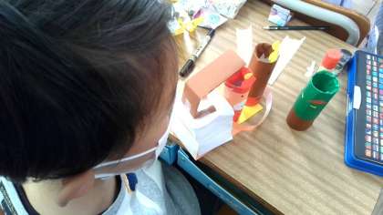 今日は、クリスマスのツリーやサンタクロース、トナカイを作りました。皆、オシャレでかわいい物が完成しました。
