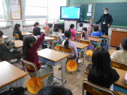 学校で使うものにはどのようなものがあるでしょうか。楽器や文房具,遊びで使うものなどを出し合っています。「はとぶえ」に応募する作品づくりをします。