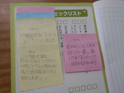 席替えをします。今まで同じグループだった友だちに,感謝の気持ちをメッセージカードで伝えます。新しいグループの友だちとまた頑張っていきましょうね。