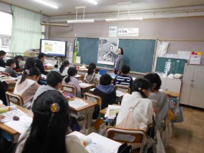 場所を尋ねたり答えたりします。イラストにある絵は英語で何というのかを,はじめに確かめます。