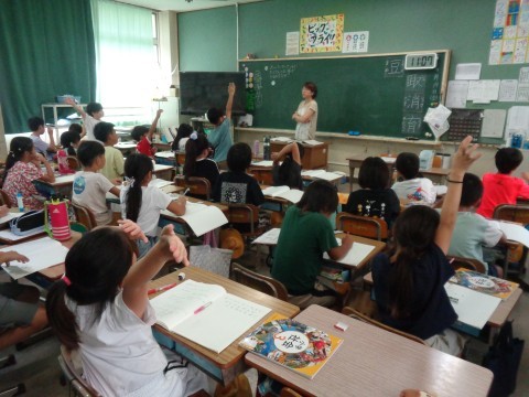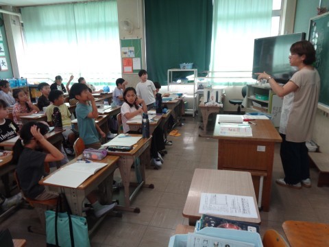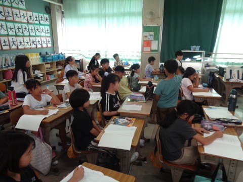 社会科の授業で、スーパーマーケットの仕事について考えています。
