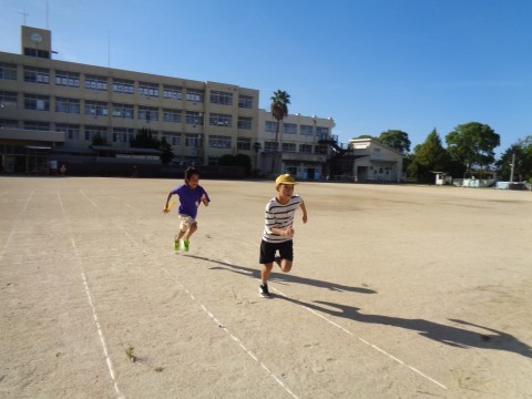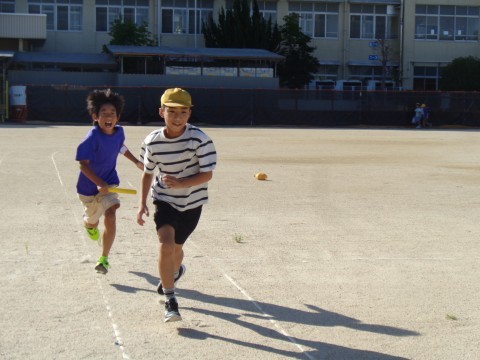 運動場では、6年生の子どもが連運のバトンパスの自主練習をしています。少し話をしてみると、昨日まで世界陸上が開催されていたので、気合が入っているようですね。