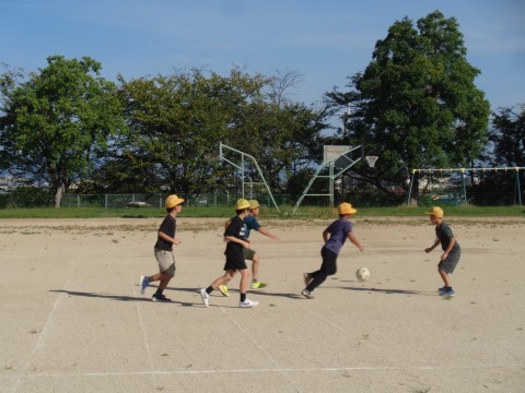 4年生の子どもは、今日もサッカーで楽しんでいます。