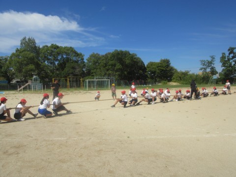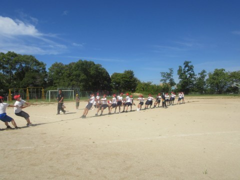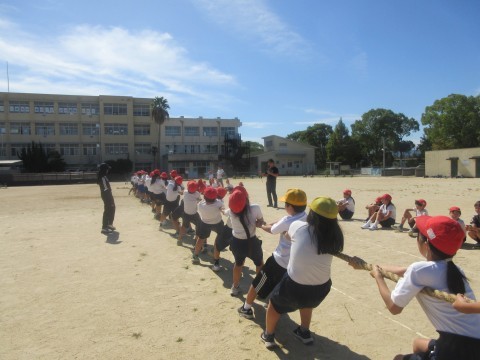 6年生は運動場で、来月行われる連合運動会の練習をしています。