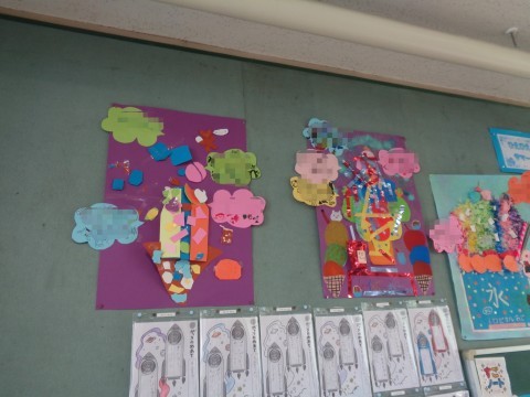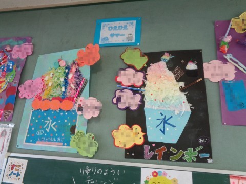 図工の授業で取り組んだ「ひえひえサマー」の鑑賞をしています。