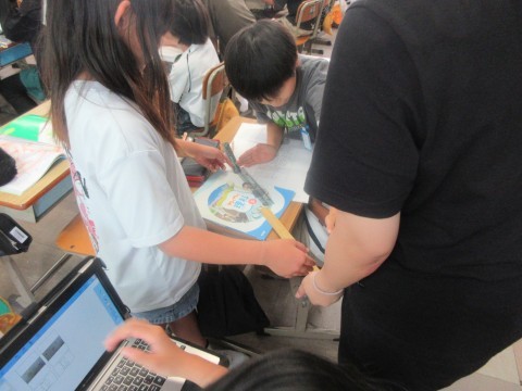 また、まとめる段階でものさしを合わせてどの位の大きさかを調べている子ども達もいました。