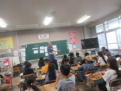 1組は社会の授業です。