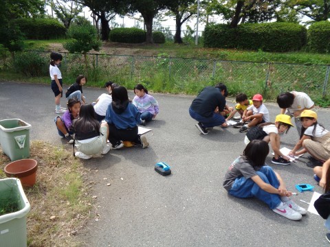 かげの向きと太陽のいちについて実験を通して考えます。