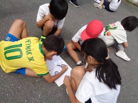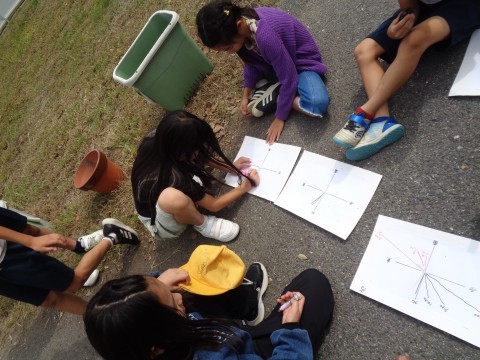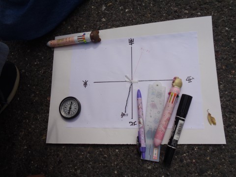 定期的に外へ出て、時間が経過するにつれて太陽がどう動いて、それに伴ってかげがどう動くかを記録していきます。