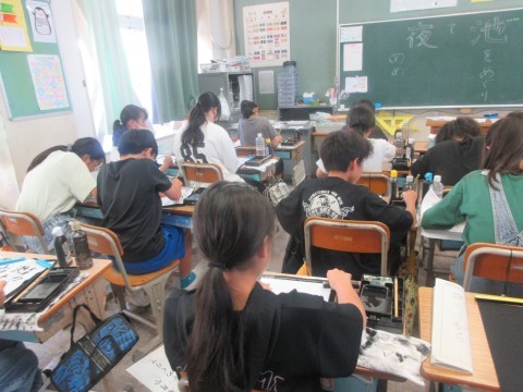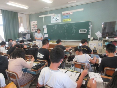 6年 習字 公開日 2025/10/07 更新日 2025/10/07 6年 6年生は習字の授業です。「名月や 池をめぐりて よもすがら」という仮名文字を書いています。バランスのとりにくい字ですが、集中して書いています。 1年生 2年生 3年生 4年生 5年生 6年生 いずみ 通級 給食・食育 校長室より 保健室より PTA 個別最適・協働的な学び