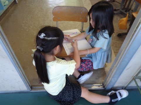 廊下を歩いているときに呼び止められたので、振り返ってみると絵しりとりをしていました。