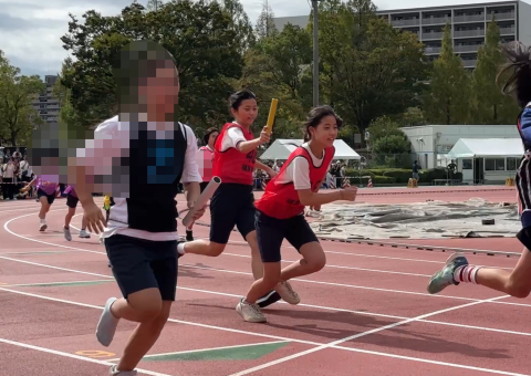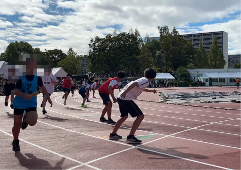 100m男女に各1名、小中男女4×100mRに中学生とチームを組んで、学校の代表として活躍しました!