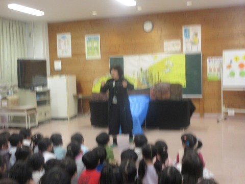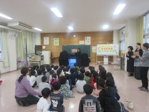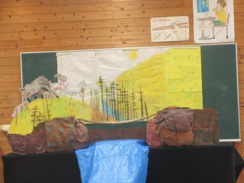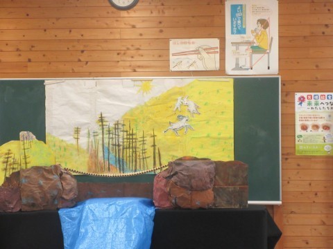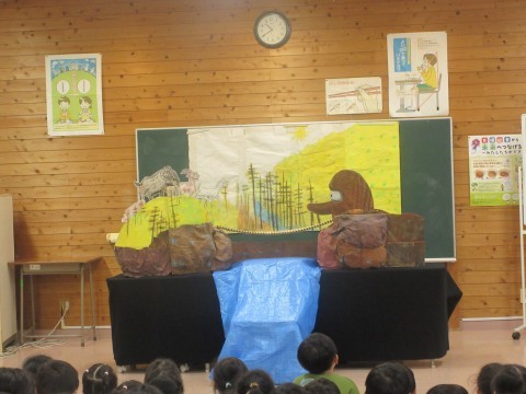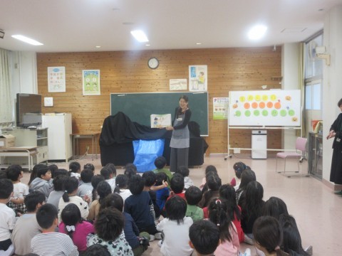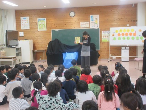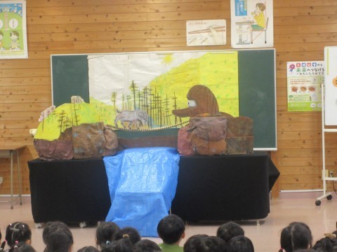読み聞かせをしてもらった後は,手作りのセットを使った