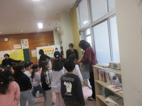 本日は20分休憩に図書ボラの皆様が1年生にむけた