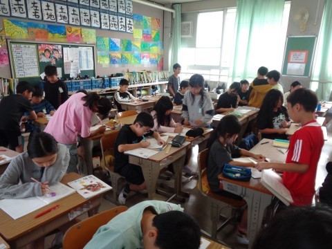 算数の授業で、くふうして計算する学習に取り組んでいます。