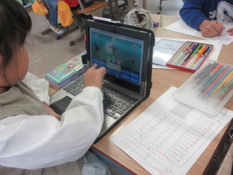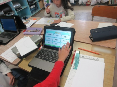 しています。タブレットで繰り返し練習問題をしながらふりかえりを