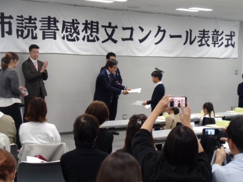 読書感想文コンクールの表彰式があり、本校の子どもが特選に選ばれ、表彰されました。