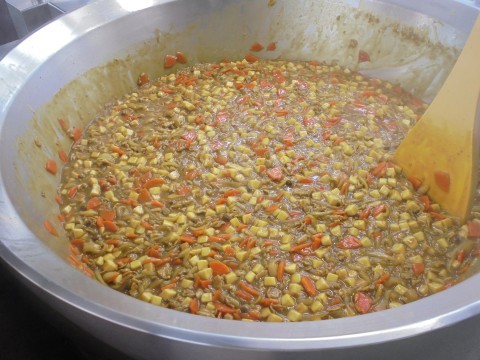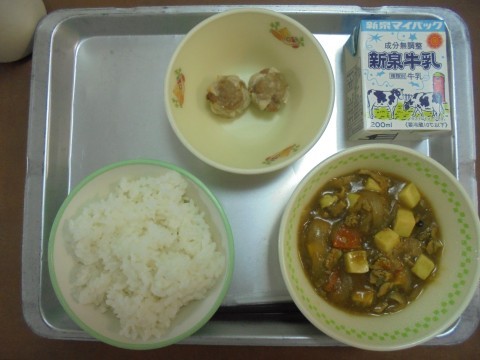 今日の給食は,麻婆豆腐をカレー味にアレンジした