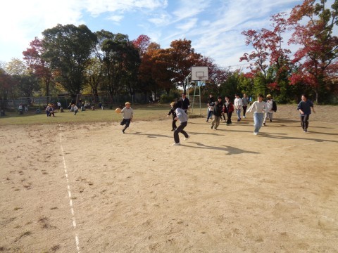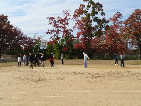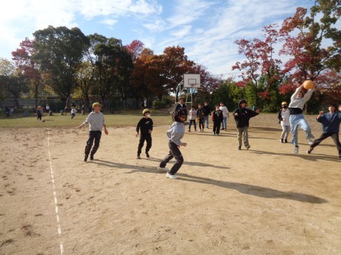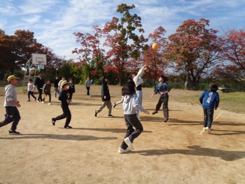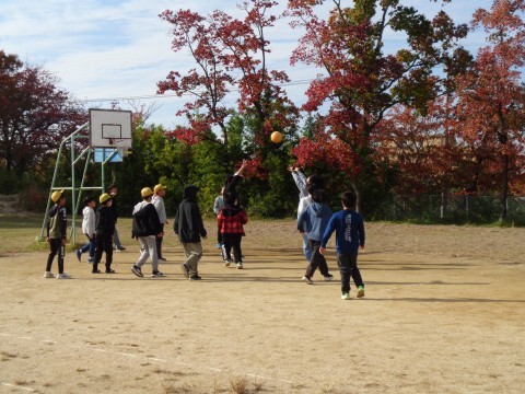 6年生の子どもは、楽しそうにバスケットボールをしています。