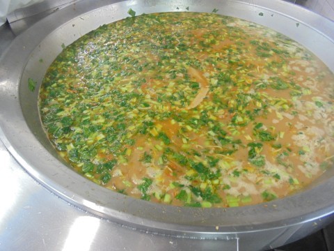 今日のタンタン麺には,堺市でとれた小松菜がたっぷり使われています。