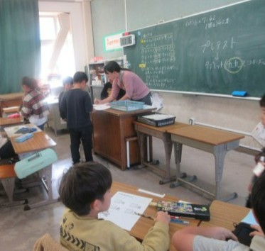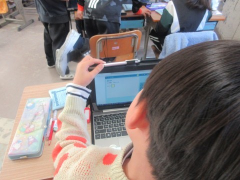 プリントを使って学習し,わからない所を先生や友達に聞いています。
