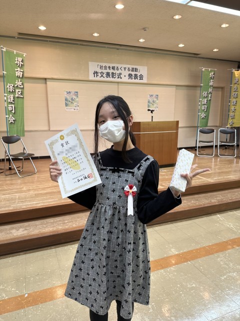 友だちにやさしくしてもらい、思いが伝わる手紙をもらった経験をもとに考えた内容で、社会を明るくするには自分には何ができるかをしっかり考えた内容でした。