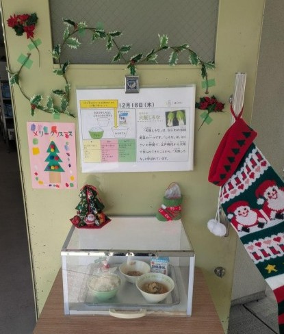 また,給食場の入り口を,調理員さんがクリスマスらしく飾り付けしてくださりました!