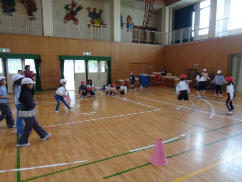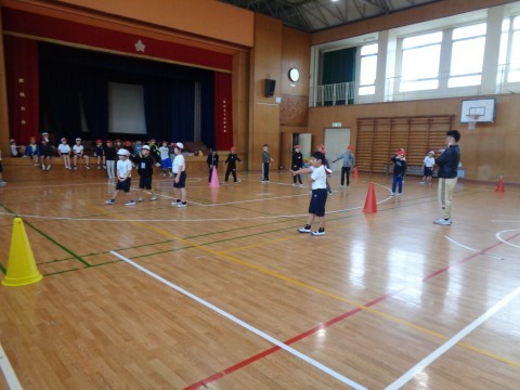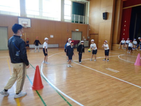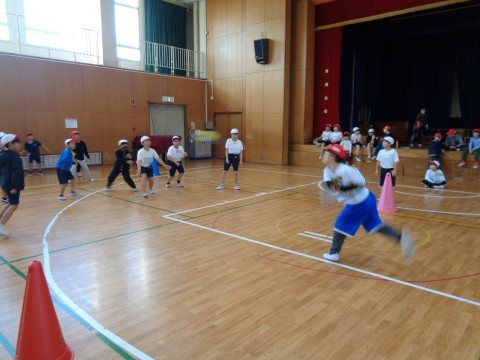 ボールを受けるのも、投げるのも、またボールを避けるのも、楽しそうに取り組め、盛り上がっています。