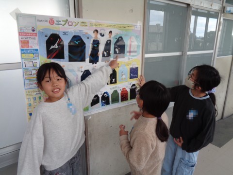 5年生の子どもたちが、家庭科の授業で取り組むエプロン選びで盛り上がっています。