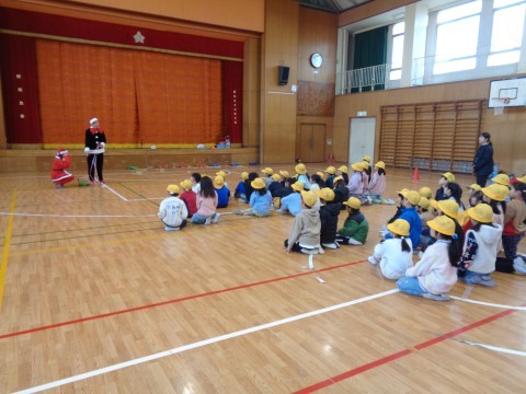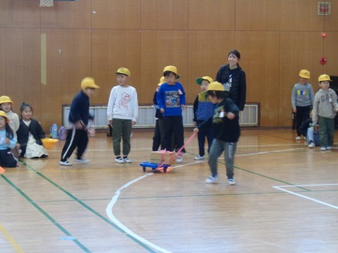 グループでプレゼントを運ぶ競争をしています。なかなか難しそうですが、楽しめています。