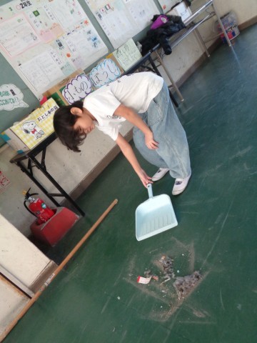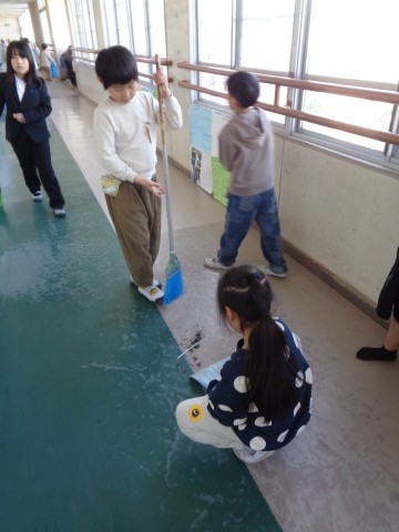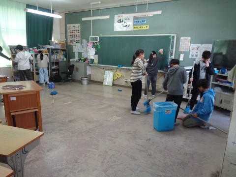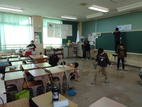 長い学期、通い続けて、過ごした場所を心をこめて掃除しています。