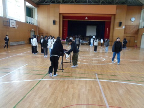 今日は、まず体育館に楽器を運び込むところからはじまりました。