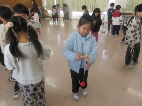 鍵盤ハーモニカやけん玉、マット運動などこの1年間で成長した