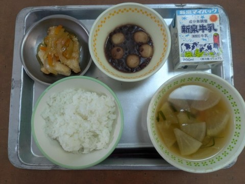 今日は朝から調理員さんが,小豆を炊いておいしいぜんざいをつくってくださいました!