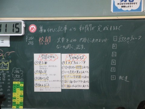 今日のめあては「集められた記事から新聞が完成するまで」を調べようです。