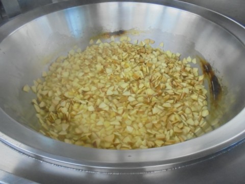 今日の給食には,青森県産の旬のりんごを甘辛く煮たコンポートが登場しました。